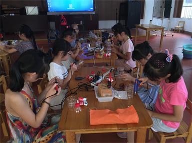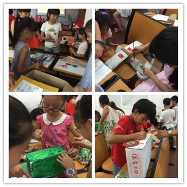 石桥头镇暑期“缤纷学堂”化废为宝环保手工制作分为创意手工制作、粘纸画制作和饮料大变身三个部分。创意手工制作课上,谢老师先拿出了自己制作的木头人、龟壳面具等给小朋友们认识,并寓教于乐。当老师拿出废木头做的人偶展示时,木头人发生了“事故”,腿上的木块掉下来,引得全场哄堂大笑。谢老师借此告诉孩子们碰到像木头人这样受伤的弱者,应该要伸出援手,做自己力所能及的事。接着,孩子们分成三个小组分工合作,用废旧纸板箱,模拟制作了飞机、航空母舰和坦克,利用这些“优秀”的军事装备来保家卫国。粘纸画制作,老师教小朋友们先用旧报纸作五颜六色的涂料。小朋友们将报纸放到盛水的脸盆里浸湿,再将报纸撕碎。然后在碎纸片中加入浆糊,再用小木棍捣成泥,最后放入颜料搅拌均匀。不一会儿,一盒盒五颜六色的颜料就制成了。小朋友们将制好的颜料用牙签一点一点填充到画好的图案中去。近半个小时后,一幅幅独一无二的粘纸画就做好啦,不过得先摊平等晾干后才可以收起。大家随时用来丢弃的塑料瓶制成各种漂亮的笔筒、小花盆、小装饰品等等。那究竟是怎么做的呢? 原来只需要一支小小的电热笔,就能在塑料瓶上“绘”出漂亮的图案。小朋友们发挥想象力做得不亦乐乎。没过多久,一只只好看又实用的小笔筒、小花盆就“新鲜出炉”啦!不仔细看的话竟然分辨不出塑料瓶原先的样子呢!通过此次手工课堂,让小朋友们了解家里看似没用的东西,通过小手的DIY可以焕发出新的风采。