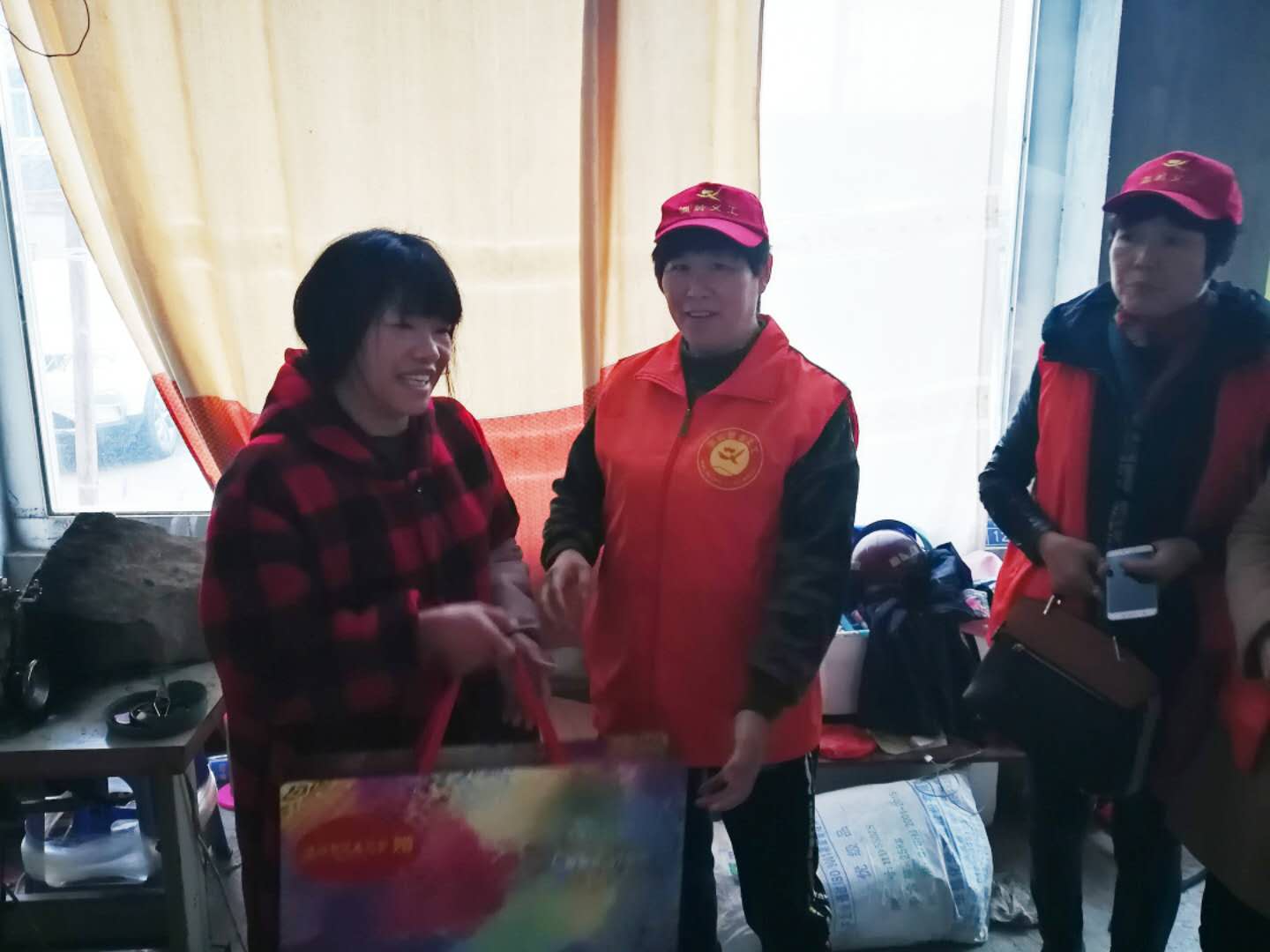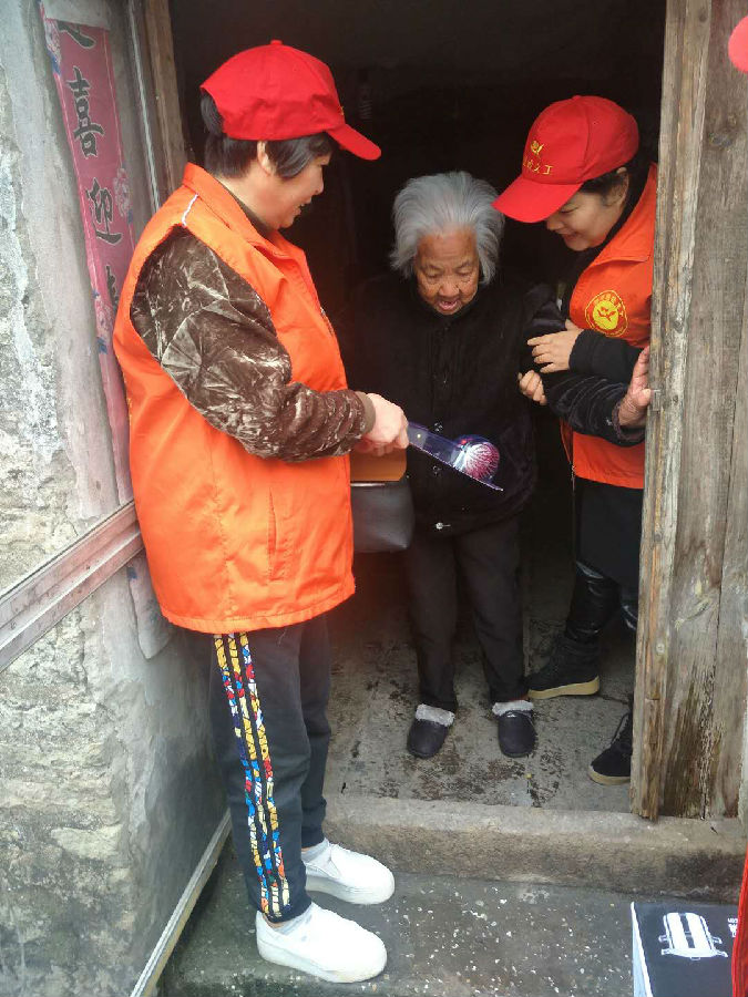 自实行执行联系群众1+10以来,新河镇村居妇联主席主动带领执委们主动上门关心关爱困难群众、孤寡老人。尤其是上个月走访以来,一些妇联执委打听到老人急需的一些物资缺乏,于是联合市、镇慈善协会,给低保家庭送去了微心愿礼物。12月1日城北村、北闸村、潮未至村三个村的妇联主席共走访了本村内6户低保家庭,送去了电饭煲、蒸锅、棉衣、床上用品等礼物。