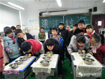 在“漂洋过海”游戏中,同学们需要将碗中的漂浮着的乒乓球吹过前面的几口小碗。孩子们鼓着腮帮子用力吹着,刚开始,一些同学没有找到窍门,一吹,把球吹到了地上。教室里传来一阵阵欢乐的笑声。随着游戏的进行,孩子们越来越熟悉,把球到前面碗的人越来越多!这真是个有趣的游戏呀!