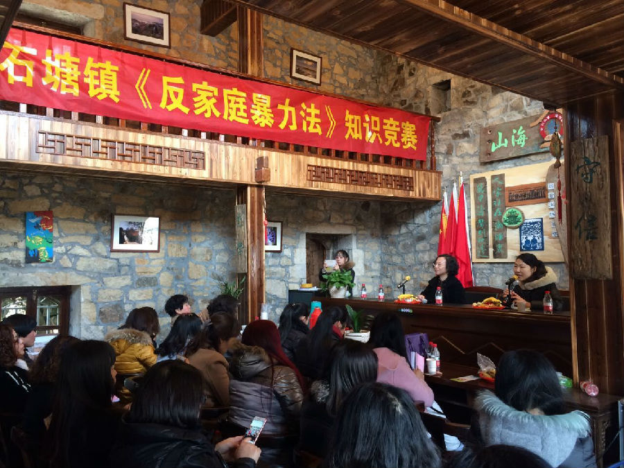 为积极策应《中华人民共和国反家庭暴力法》正式实施,加大普法宣传教育力度,提高妇女的反家庭暴力意识和能力,坚定她们更好发挥“自尊、自信、自立、自强”的精神,3月11日下午,一场围绕《反家庭暴力法》展开的知识竞赛在石塘镇东山村文化礼堂举行。此次竞赛分为必答题、抢答题和加分题三个环节进行,来自58个村居的妇女主任,以片为单位,分六组一决高下。