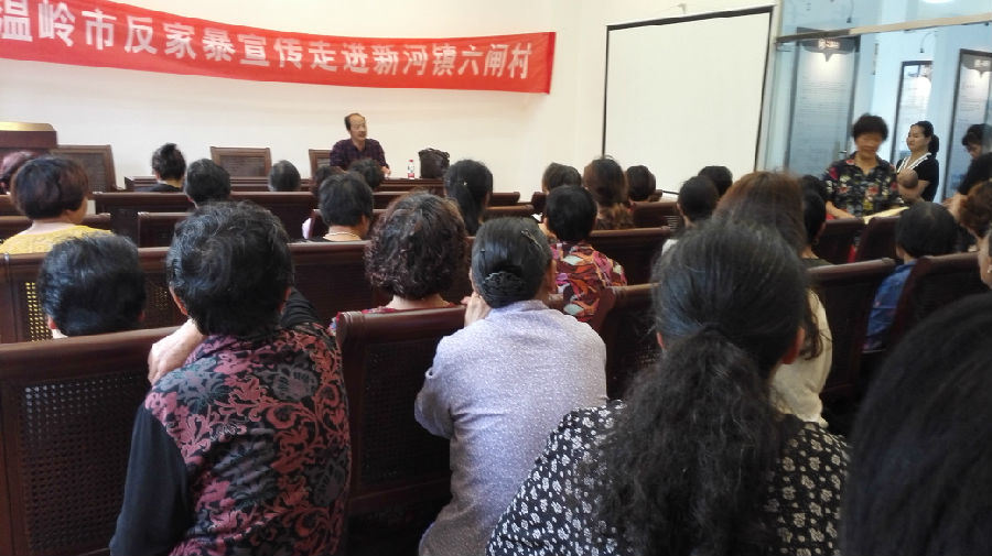 “新的反家暴法,不只是针对我们传统意义上的老公打老婆的问题,还包括了父母和孩子,成年子女和年迈父母之间的身体侵害和精神侵害”。5月23日下午,设在新河镇六闸文化礼堂内的朱子讲堂坐得满满当当,六闸村、潮观村70多名妇女同志和男同胞聚精会神地聆听了一堂以反家暴为主题的讲座。