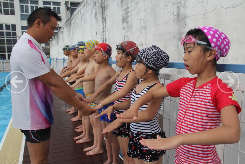 讲座结束后,张教练鼓励孩子们下水,在游泳池里手把手教孩子们正确的游泳技巧,深受社会各界好评。